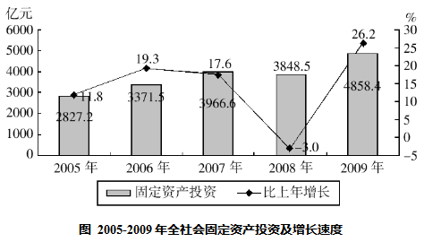 1、若农村投资保持2009年的增加速度,则2010年农村投资预计约( )亿元。