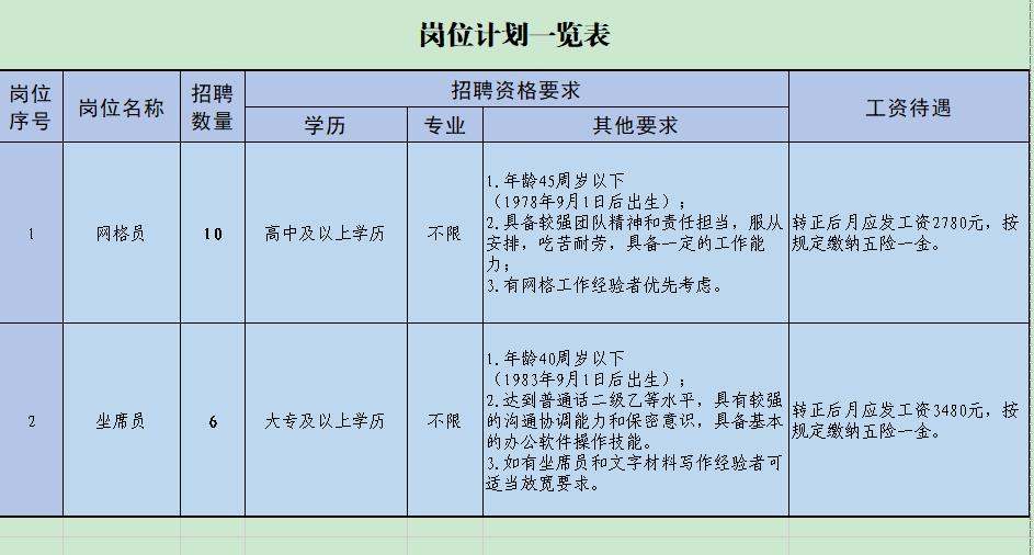 二、岗位计划一览表