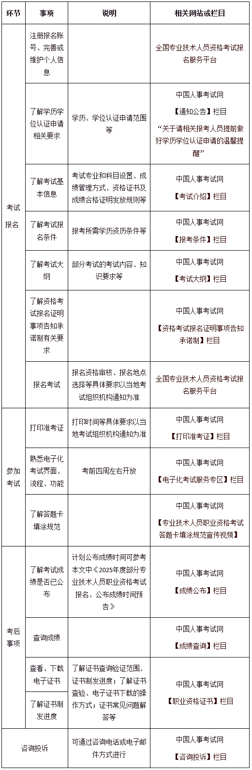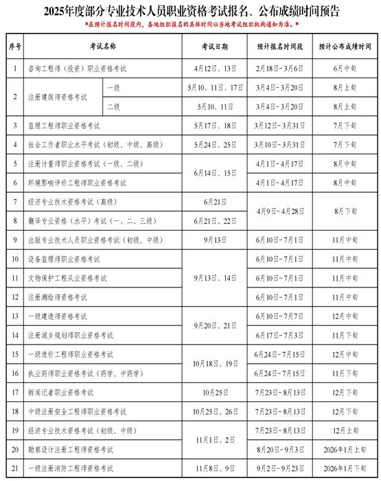 ● 2025年度部分专业技术人员职业资格考试报名、公布成绩时间预告