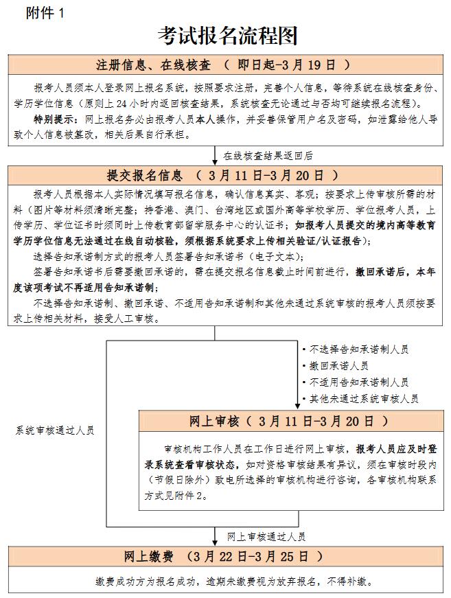 2.提交报名信息时间为2025年3月11日至3月20日。注册信息原则上24小时内返回核查结果,建议报考人员提前完成用户注册及学历、学位等信息维护,以免错过报名。为加强报名证明事项告知承诺制事中监管,如报考人员提交的境内高等教育学历学位信息无法通过在线自动核验,应在报名前及时登录中国高等教育学生信息网(学信网)进行验证/认证,下载相关PDF格式在线验证/认证报告,报名期间按要求上传相关验证/认证报告,接受人工核查。