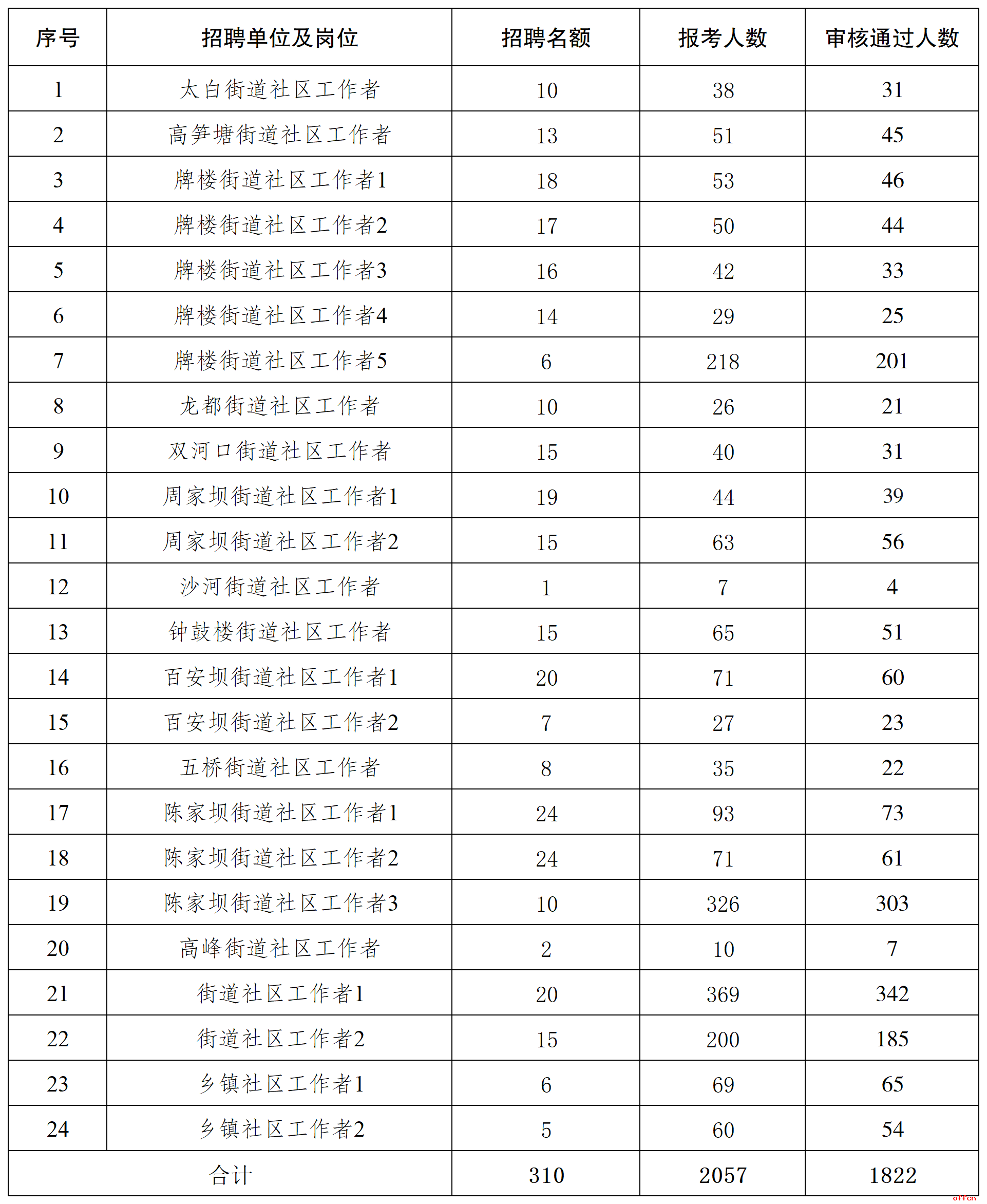 原标题:重庆市万州区2025年公开招聘社区工作者报名统计(截至2025年6月4日17:30)