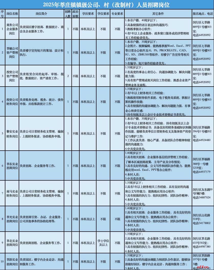 (二)报名方式采取现场报名和资格审核相结合的方式,考生在网上自行打印报名表、承诺书,详见2025年莘庄镇镇级公司、村(改制村)招聘工作报名表.xls,并准备报名所需材料,至各报名点报名。