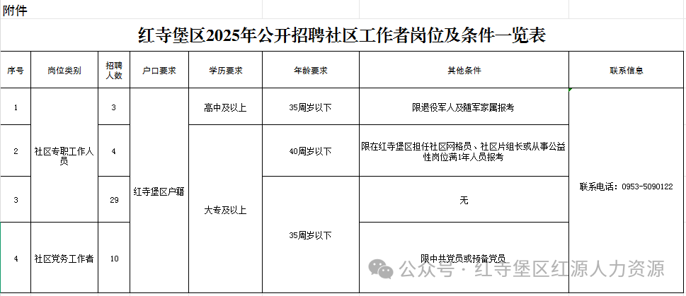 附件:红寺堡区2025年公开招聘社区工作者岗位及条件一览表