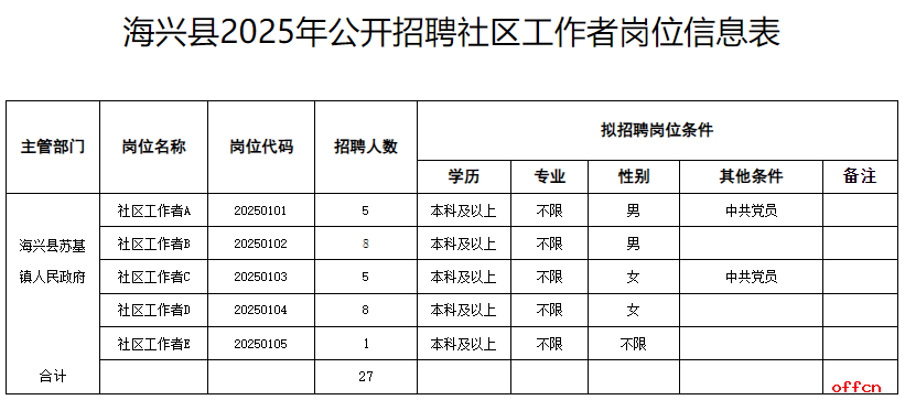 原标题:海兴县2025年公开招聘社区工作者的公告