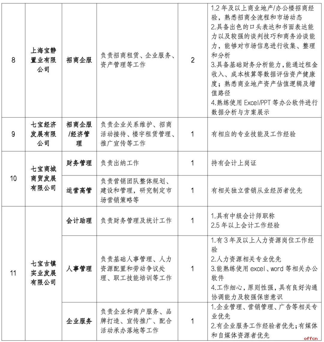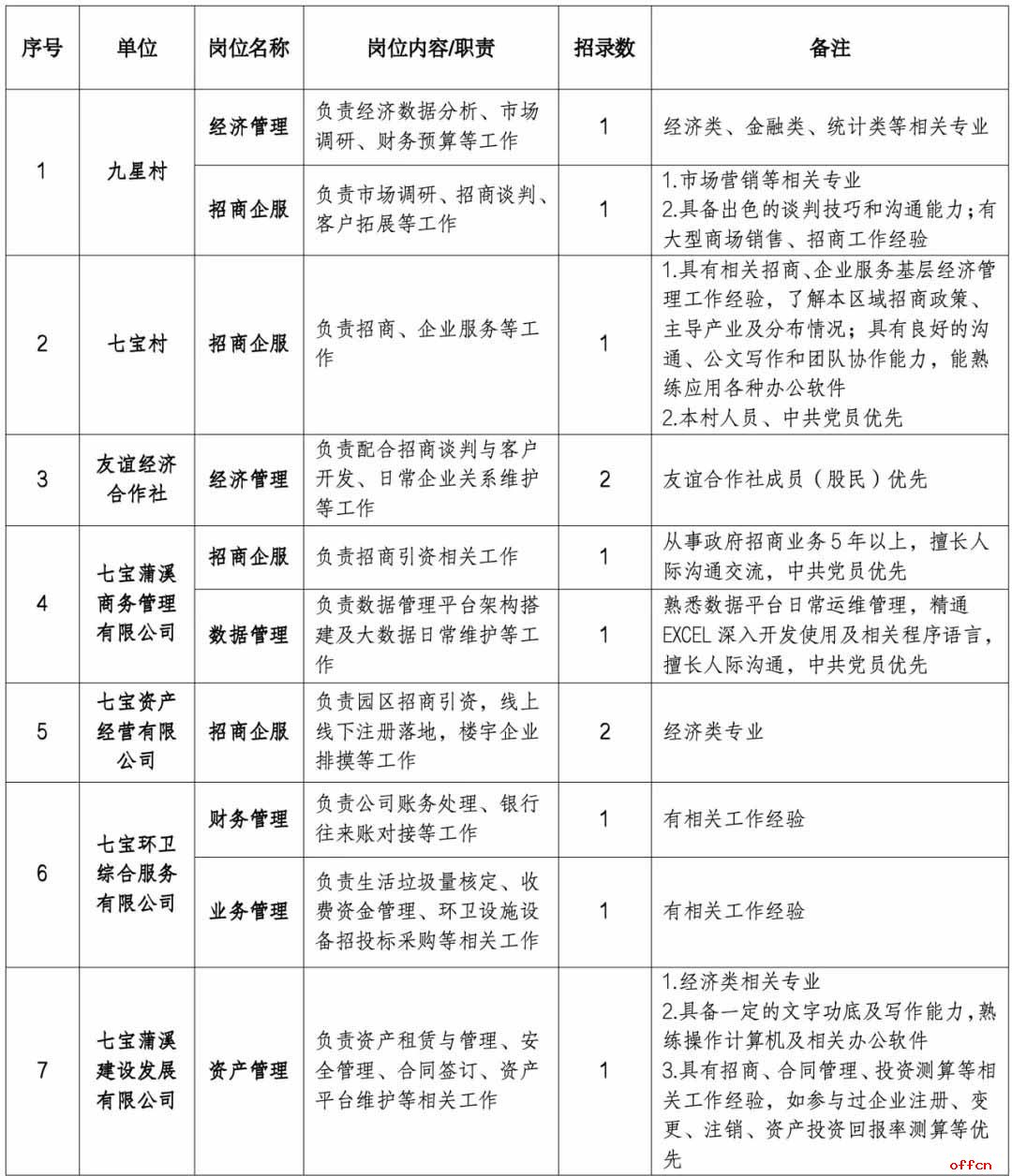 为进一步推进七宝镇村(合作社)、镇属公司人才队伍建设,提升服务管理专业化水平,按照公开、平等、竞争、择优的原则,拟面向社会公开招聘一般管理岗位人员20名,有关事项公告如下: