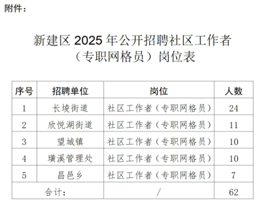 原标题:新建区2025年公开招聘社区工作者(专职网格员)公告