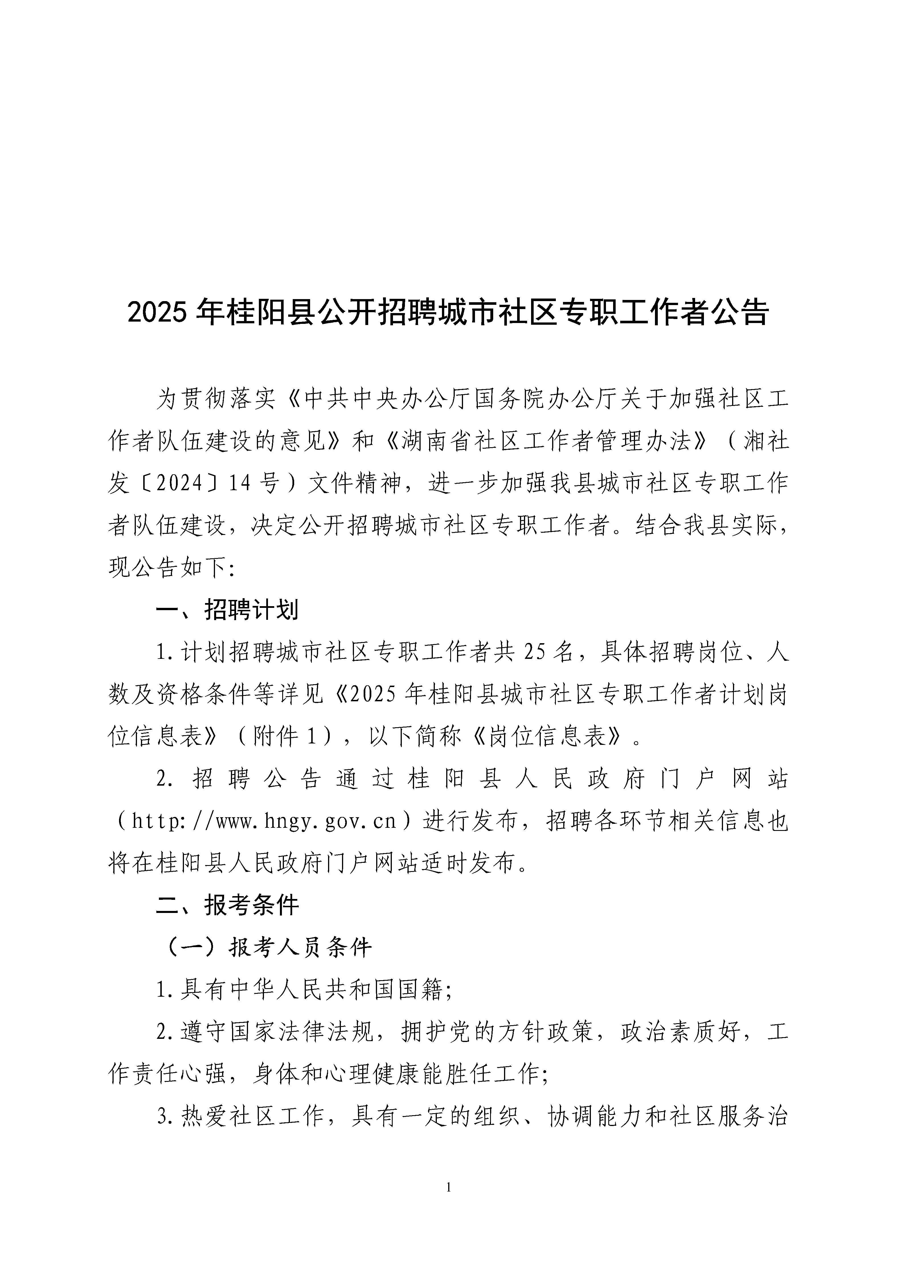 原标题:2025年桂阳县公开招聘城市社区专职工作者公告
