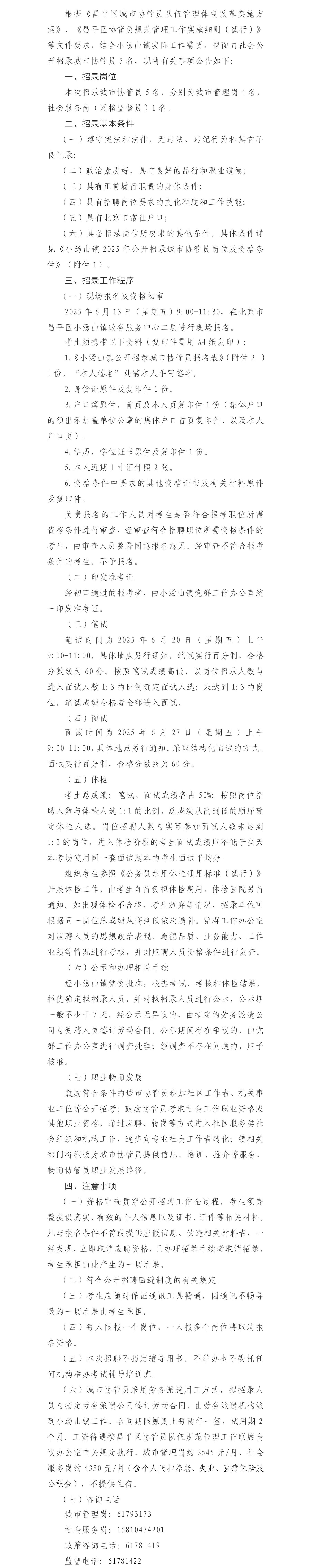 原标题:小汤山镇2025年公开招聘城市协管员公告