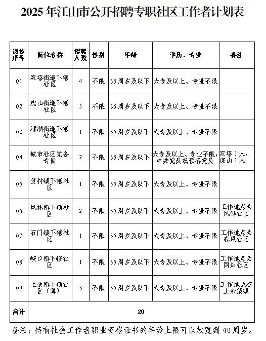原标题:2025年江山市公开招聘专职社区工作者公告