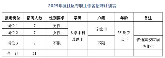 2025年全县社区专职工作者拟公开招聘21名,具体招聘计划详见下表。